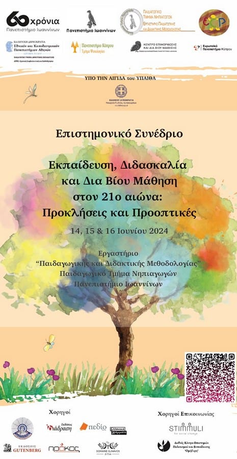 Το Εργαστήριο «Παιδαγωγικής και Διδακτικής Μεθοδολογίας» του Παιδαγωγικού Τμήματος Νηπιαγωγών του Πανεπιστημίου Ιωαννίνων, διοργανώνει Επιστημονικού Συνεδρίου με Διεθνή Συμμετοχή, στο Πανεπιστήμιο Ιωαννίνων στις 14, 15 & 16 Ιουνίου 2024, σε συνεργασία με το Διακρατικό Πρόγραμμα Μεταπτυχιακών Σπουδών «Σχολική Συμβουλευτική και Καθοδήγηση» του Παιδαγωγικού Τμήματος Δημοτικής Εκπαίδευσης, του Εθνικού και Καποδιστριακού Πανεπιστημίου Αθηνών και του Τμήματος Ψυχολογίας του Πανεπιστημίου Κύπρου, το Κέντρο Δια Βίου Μάθησης του Εθνικού και Καποδιστριακού Πανεπιστημίου Αθηνών και το Ευρωπαϊκό Πανεπιστήμιο Κύπρου.